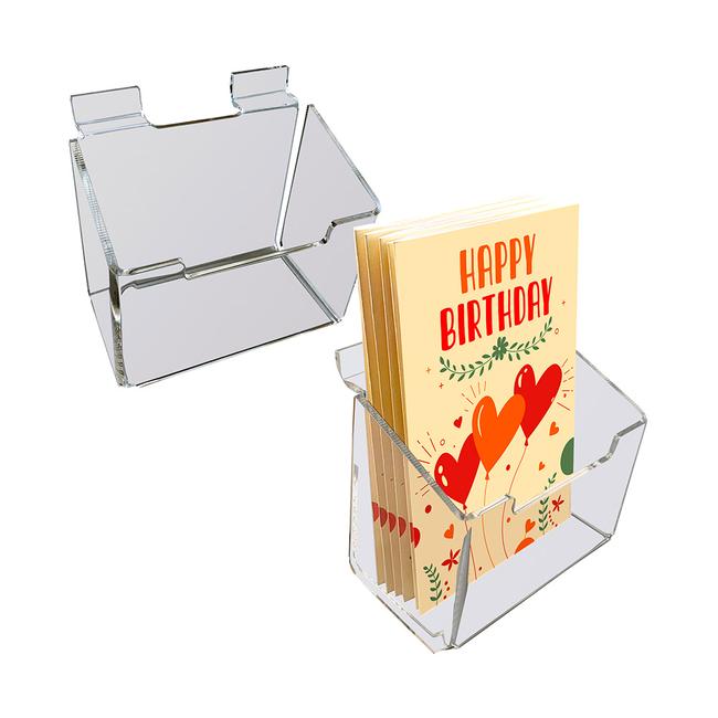 Whether you're showcasing your greeting card selection or attracting customers at the point of purchase with gift cards, our acrylic slatwall card holder is the ideal accessory for your slat wall panel display.