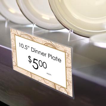 This center mount sign holder is equipped with adhesive and can be mounted on any kind of shelving. The sign can easily be inserted from either side of the sign holder. This 3 fold sign cover is designed to display your sign centered on the shelf.