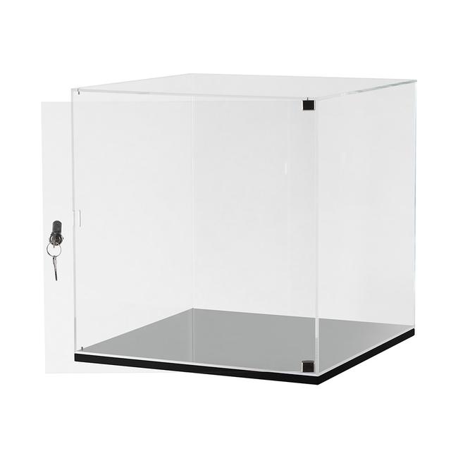 The case features a turn key lock in back, adding an added layer of protection to your collectibles, jewelry, museum pieces, premium liquors, or retail merchandise. Designed to stack directly on top of the EasyCubes cube, the EasyCubes Lockable Display Case is a popular choice for collectors, retailers and exhibitors alike. It has a black base and measures 16" high.