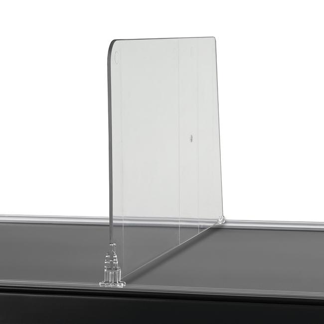 The MP Series Shelf Divider is a reliable solution for keeping stacked goods organized and separated. Made of durable, clear polycarbonate plastic, it measures 15.16" long by 7.87" high to suit various shelf configurations. Ideal for items like envelopes, paper, trays, or shirts, this straight divider also supports taller products such as paint cans, cleaners, or deodorants. It attaches to the Adhesive T-Rail for Shelf Divider at the front of the shelf and the Divider Rail PEK at the back of the shelf (rails sold separately.) This shelf divider is also designed to be combined with the Series VI Shelf Pusher by alternating dividers and pushers.