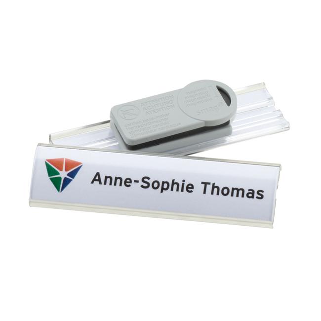 Designed for long-term use, this professional name tag features a magnetic backing and a slot in the side for inserting your 3" x .75" paper label. Whether for daily employee identification or temporary event credentials, this affordable and customizable name tag provides a practical and stylish solution to enhance engagement and organization in any setting.
