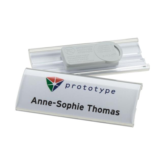Designed for long-term use, this professional name tag features a magnetic backing and a slot in the side for inserting your 3" x .75" paper label. Whether for daily employee identification or temporary event credentials, this affordable and customizable name tag provides a practical and stylish solution to enhance engagement and organization in any setting.