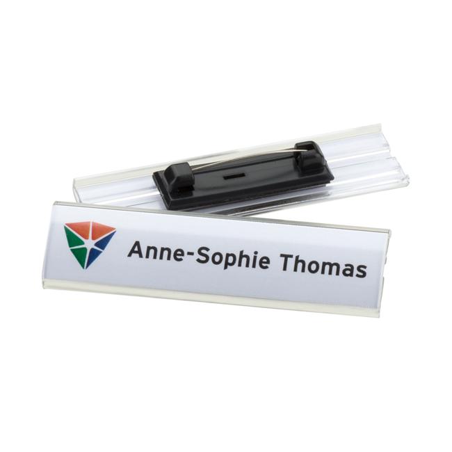 Designed for long-term use, this professional name tag features a mounting pin and a slot in the side for inserting your .75" x 3" paper label. Whether for daily employee identification or temporary event credentials, this affordable and customizable name tag provides a practical and stylish solution to enhance engagement and organization in any setting.