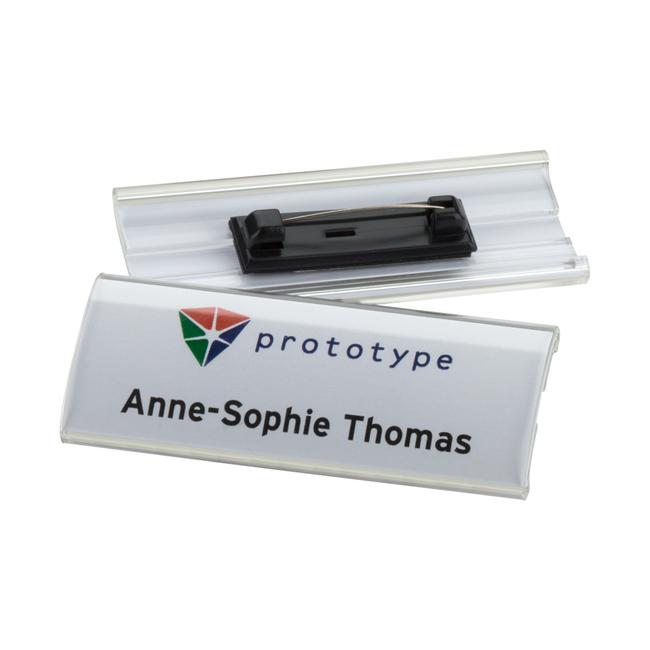 Designed for long-term use, this professional name tag features a pin backing for mountin and a slot in the side for inserting your 3" x 1.25" paper label. Whether for daily employee identification or temporary event credentials, this affordable and customizable name tag provides a practical and stylish solution to enhance engagement and organization in any setting.