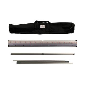 The pop up banner display features adhesive tape for securing the bottom of your banner, offering a straightforward and reliable way to attach your sign. Simply align your banner with the preprinted line along the adhesive strip, and it will hold your art firmly in place. The top profile of the stand is equipped with a clamping mechanism that securely grips the top of your poster. A sturdy pole inserts into the top banner holder and the base.