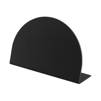 The Semi-Circular Chalkboard Tabletop Display is a compact and versatile chalkboard sign that's perfect for businesses, events, and personal use. Designed to sit on counters, tables, or reception desks, this chalkboard sign stand provides a stylish and functional way to showcase messages, menus, promotions, or announcements. Its black writing surface allows for easy customization with traditional chalk or liquid chalk markers, making it simple to update information as needed.