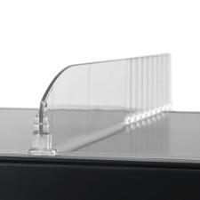 Adhesive Shelf Dividers provide a simple and effective way to divide shelves into distinct sections without the need for hardware or installation tools. With their adhesive tape on their bases, these plastic shelf dividers can be easily affixed to the surface of shelves, creating individual compartments to keep items neatly organized and prevent them from mixing or falling over. Their discreet design seamlessly integrates with the shelf surface, maintaining a clean and uncluttered appearance while enhancing accessibility and visibility of stored items.
