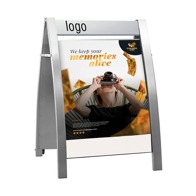 The Steel Framed A Board with Wheels combines mobility and functionality in a modern design. This double-sided sandwich board features a solid steel construction and two wheels on back.