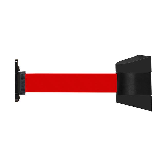 The Tensa Series Wall Mounted Barrier Tape is a space-saving and efficient crowd control and safety solution for blocking off areas or directing foot traffic. It features a 2" wide by 15 ft. long red tape barrier, a black plastic wall mounting bracket, and a plastic mounting bracket on the end of the tape.