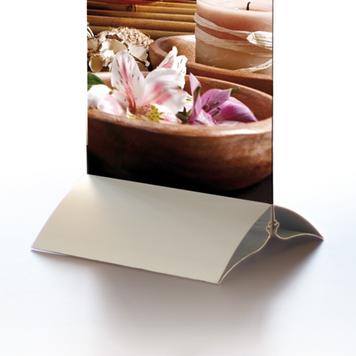 The Unico Base is an aluminum sign stand designed to hold rigid signage in thicknesses up to 1.125". Sign changes are simple with no tools necessary. A plastic knob at the base of the display is tightened to grip and hold your sign in place.