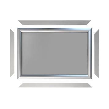 Our Window Frame System makes it easy to display and change signs in your store window. It consists of an aluminum snap frame, a flat border frame, an acrylic backer and a plastic cover. The snap frame is attached to the inside of the store window using double-sided tape. The flat border frame is attached to the outside of the window. The sides of the snap frame flip open. Your signs are inserted into the snap frame back-to-back, so that one side of the sign is visible from the inside of the store and the other side of the sign is visible on the outside.